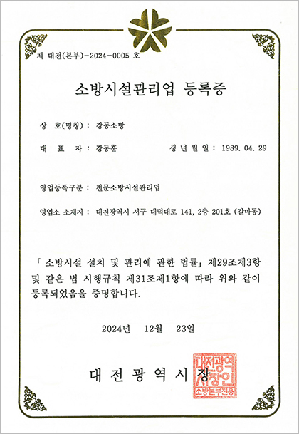 소방시설관리업등록증