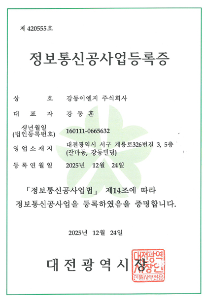 정보통신공사업등록증